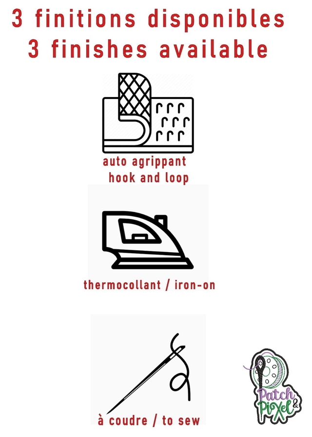 Facile à poser : soit à coudre, à thermocoller ou à positionner sur une zone velcro suivant la finition que vous choisissez !