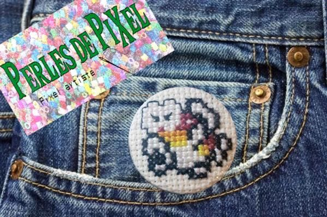Poisson Mario Badge ou porte clé brodé à la main pixel art
